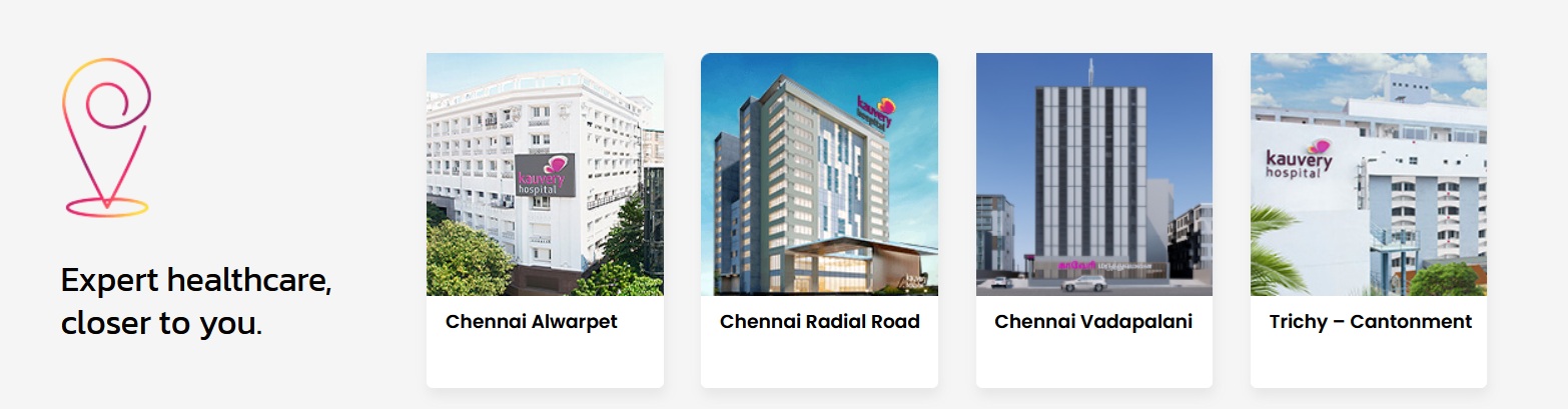 Today, Kauvery is a multi-specialty hospital chain with 2250+ beds in six locations including Trichy, Chennai, Salem, Hosur, Tirunelveli and Bengaluru. With twelve hospitals and a workforce of over 8000+, Kauvery’s mission is to provide exemplary secondary and tertiary care.